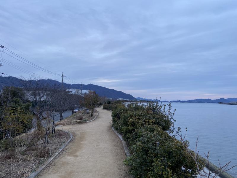 実際に使用感を確かめに、営業車のポルシェ(人はなぜかキャリイと言う(^^; )で行ってきました。まずは広島県三原市の沼田川(ぬたがわ)沿いの遊歩道。ここは綺麗に整備されたジョギングや散歩にいいコース。対岸の三菱重工業の工場や筆影山を望む河口から、瀬戸内海に通じる埋め立て地に遊歩道は続きます。